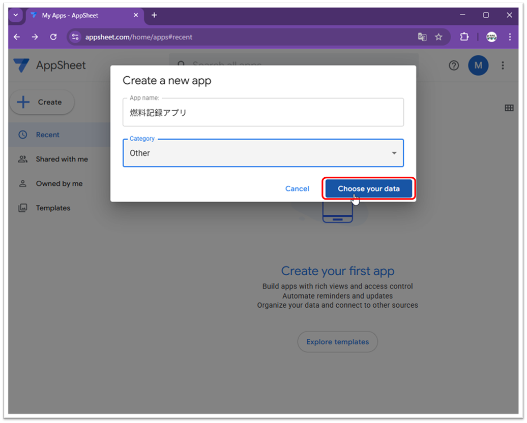 AppSheetでのアプリ作成